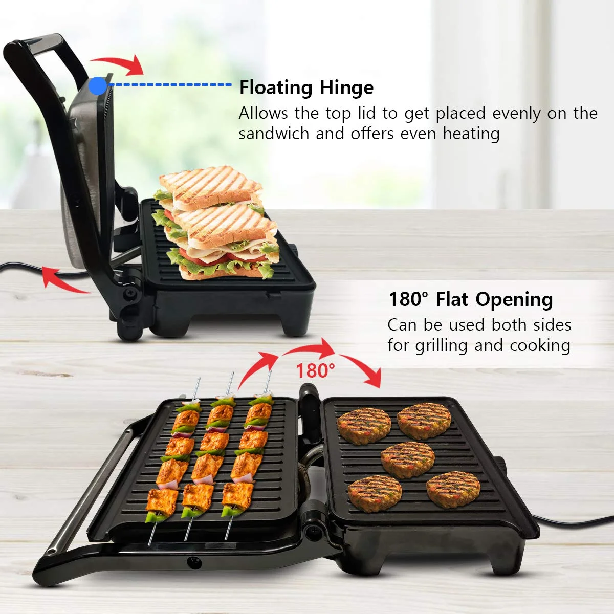 | Opening | 180° flat‑open design for grilling/panini use |