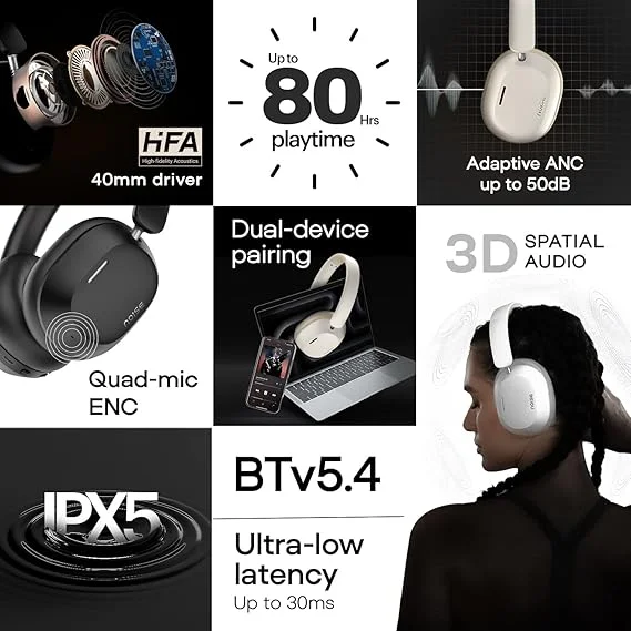 Be the first to review “NOISE Airwave Max 5 high-fidelity acoustics, Adaptive Hybrid ANC, 80 hours of playtime, spatial audio – CARBON BLACK”